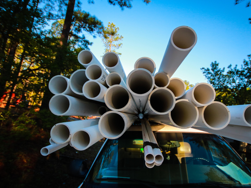 PVC, GI, and HDPE pipes with fittings for plumbing and drainage solutions.